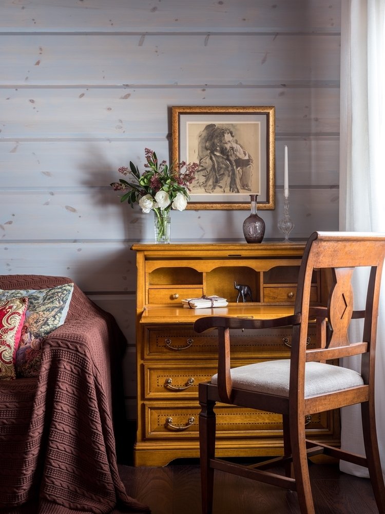 Как дизайнер небанально оформила дом из клееного бруса5,0