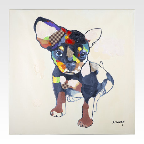 Трогательный лопоухий щенок, несомненно, вызовет бурю положительных эмоций. Яркие мазки акриловой краски и элементы аппликации придают полотну жизнерадостный, позитивный характер. Особенно порадуются такому новому жильцу в детской комнате.