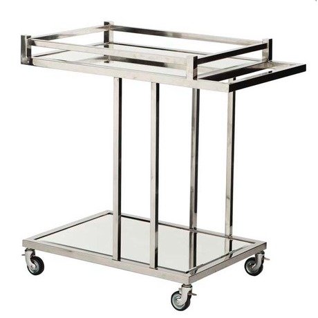 Современный дизайн сервировочного столика совмещен с легкость конструкции и функциональностью. Его удобство неоспоримо. Он оснащен колесиками и ручкой для перемещения. Две столешницы позволяют разместить сразу много предметов.