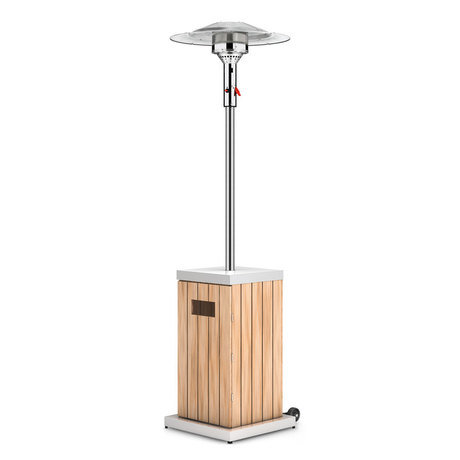 При мощности обогрева в 8 киловатт обогреватель Wood является уникальным в своем роде обогревательным прибором. За короткое время этот обогреватель создает вокруг себя приятную теплую атмосферу и прогоняет мысли о холодных, суровых днях. Корпус обогревателя, выполненный из ценной породы дерева, обработан маслом и абсолютно устойчив к ультрафиолетовому излучению и атмосферным воздействиям. Основание, крышка корпуса и стойка изготовлены из стали с порошковым напылением. Большую дверцу в корпусе обогревателя, зафиксированную при помощи магнитного запирающего устройства от случайного открывания, легко открыть для смены газового баллона в обогревателе.