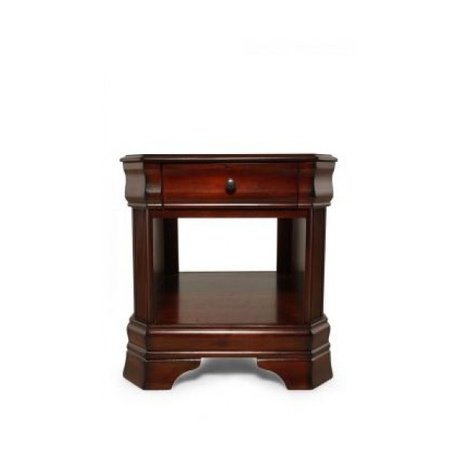 Тумба имеет глянцевую столешницу и основание в светло-коричневом слегка состаренном цвете. Фурнитура продолжает ретро линию, она имеет цвет античной бронзы. Основание тумбы выполнено из шпонированного вишней массива дерева. Благодаря сквозной полке по центру, тумба не выглядит массивной, но в тоже время сохраняется ее солидный, строгий образ.