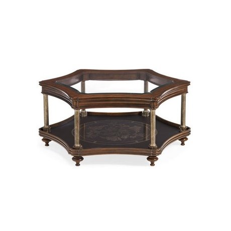 Эта модель стола бесспорно станет центром притяжения всеобщего восхищения. Необычная для стола шестиугольная форма, отделка Bridle и Emily Black, восхитительные резные элементы филигранного исполнения - все продуманно и органично. Стол состоит из двух дополняющих друг друга панелей. Одна из них расположена внизу с узором ручной росписи, другая - в верху в качестве столешницы со стеклянной вставкой, через которую можно любоваться росписью. Помимо внешнего великолепия изделие очень практично и надежно, рассчитано на продолжительный период эксплуатации. Такой предмет мебели вы с гордостью можете передавать по наследству.