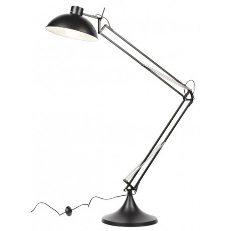 Светильник без лишних декоративных элементов выглядит просто, но в то же время сразу ясно, что это дорогая вещь. Он устанавливается на пол на округлое основание. Светильник имеет длинную тонкую ножку, которая позволяет регулировать высоту и направление света, сверху модель увенчана абажуром в форме полусферы. Лампа полностью выполнена в черном цвете из железа, и только внутри абажур окрашен в белый.