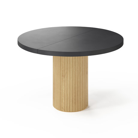 Столешница толщиной 6 см — выполнена из МДФ с покрытием из натурального дубового шпона и защищена двумя слоями матового лака для легкого уходаЦилиндрические опоры диаметром 38,5 см — изготовлены из массива дуба и при раскладывании красиво разделяются на два полукругаВкладка 50×100 см — хранится отдельно от стола, что позволило сохранить чистоту дизайна без компромиссовВысота стола 76 см — эргономичный стандарт, удобный для людей разного ростаСтол «Далим M» белорусского бренда Hi!moon органично впишется как в скандинавский, так и в современный интерьер. Черно-бежевая цветовая гамма делает его универсальным решением для разных стилистических концепций.Уход и эксплуатация: