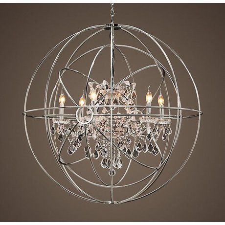 Люстра Double Gyro от голландской компании Roomers являет собой удивительно гармоничное сочетание классических деталей и современных форм: привычная люстра с множеством хрустальных подвесок вписана в “двойной гироскоп”. Широкая массивная люстра отлично впишется в современный эклектичный интерьер просторной гостиной.