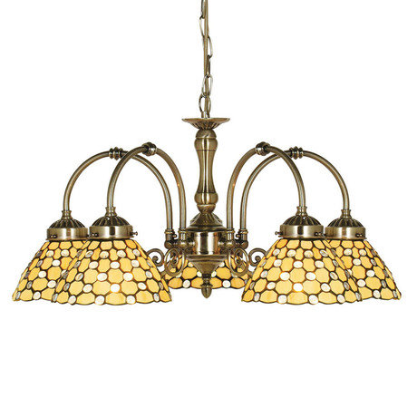 Люстра Raindrop выполнена в стиле “Тиффани”, ставшей классикой 20 века. Этот стиль характеризует способ соединения небольших кусочков стекла с помощью медной фольги. Техника Тиффани стала самой распространенной во всем мире для создания витражей и ламповых абажуров. Люстра оснащена 5 небольшими плафонами и подойдет для оформления света в гостиной, на кухне, над столовой зоной, а так же в кафе и отелях.