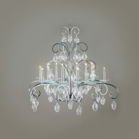 Люстра 12-ти рожковая из коллекции ST Luce на хромированной арматуре. Дизайн ламп выполнен в виде свечей в подсвечниках. Декор: стеклянные чашечки и подвески с кулонами на арматуре. Высота светильника регулируется.
