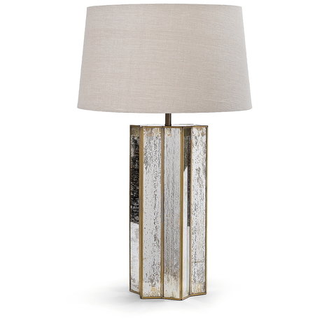 Элегантная лампа в современном стиле с зеркальной отделкой и светлым абажуром.