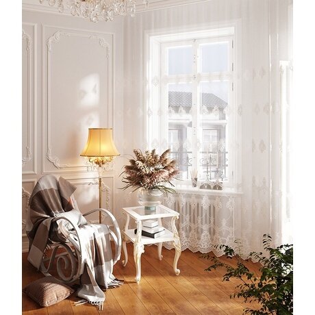 В комплект входит одно полотно шириной 500 см, высотой 260 см, со шторной лентой 6 см. Тюль «Биатрис» - это вариант для тех, кто любит роскошь! Крупная плотная вышивка белыми нитями располагается широкими купонами по всему полотну тюля. Сам рисунок выполнен в дворцовом стиле. В основе – легкая и мягкая французская сетка, которая практически не видна. Низ тюля – ажурный. Подходит для классических интерьеров.При помощи шторной ленты для крючков легко регулировать ширину портьеры и создавать аккуратные равномерные складки, подгиб шторной ленты возможно использовать как кулиску для круглых карнизов диаметром 16, 19, 25 мм.Ткань отличается высокой износостойкостью, хорошо драпируется, защищает от солнечных лучей, не выгорает, при правильном уходе сохраняет форму и первоначальный внешний вид.Уход за тканью: Разрешена бережная стирка при 30 градусах, глажка утюгом не выше 110 градусов. Внимание! Возможно незначительное отличие цвета от изображения на мониторе ввиду различных настроек и цветопередачи монито