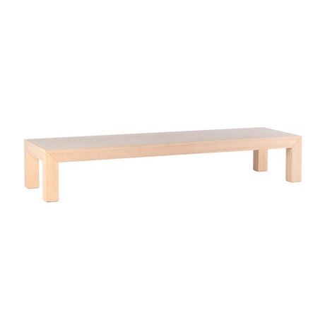 Роскошный в своей простоте журнальный столик из светлого дерева. Конечно же, ярким его делают пропорции -- длина больше чем в 3 раза превышает ширину. Одинаковая ширина граней ножек и торца столешницы делают конструкцию монолитной на вид. Достойны внимания узлы соединения ножек и столешницы, выполненные с невероятным изяществом.