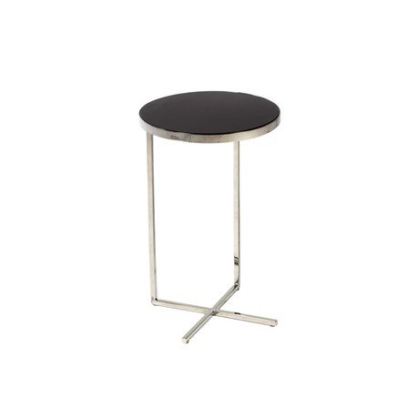 Интересный по дизайну кофейный столик органично впишется в интерьер в стиле «хай-тек» или «лофт». Идеально круглая столешница опирается на футуристической конструкции ножки, а её чёрная поверхность, выполненная из закалённого стекла, смотрится эффектно в сочетании с полированной сталью – в итоге перед нами очень стильный аксессуар.