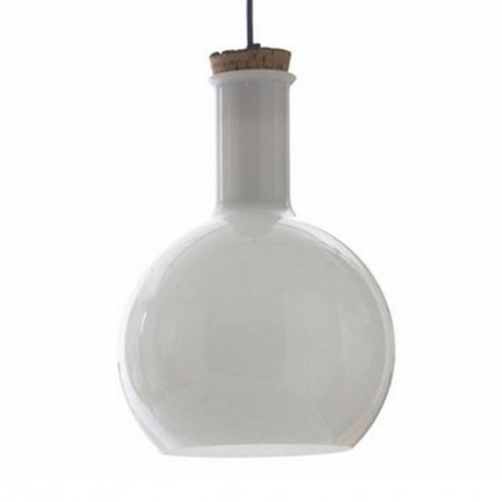 Подвесной светильник Labware, состоящий из выдувного, белого, матового стекла, с вкрученной пробкой из коры пробкового дуба и гибким кабельным шнуром.