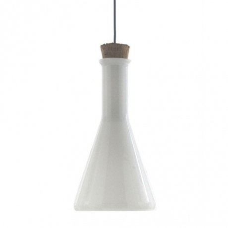 Подвесной светильник Labware, состоящий из выдувного, белого, матового стекла, с вкрученной пробкой из коры пробкового дуба и гибким кабельным шнуром. Коллекция Labware также выиграла конкурс Best New Product.
