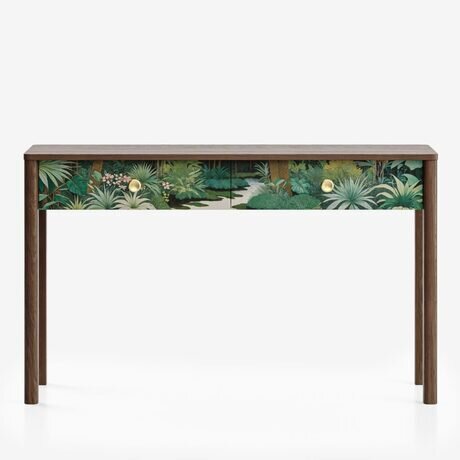На фото консоль представлена: тонировка - Дуб тобакко, принт - Тропический ар-нуво, ручки - В1.