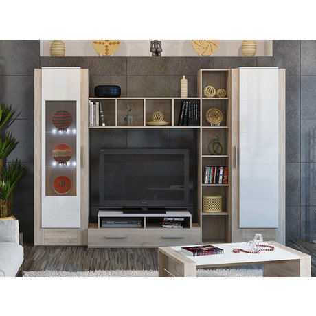 Стенка для гостиной Легкость 1. Каркас — ЛДСП. Цвет — бежевый, белый.