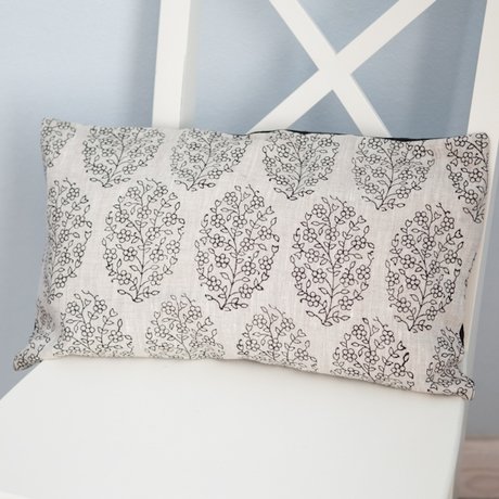 Красивая прямоугольная подушка с набивным рисунком в стиле скандинавского кантри. Рисунок — черные веточки можжевельника, — не смотря на свою простоту и строгость смотрится очень уютно и по-домашнему. Такая подушка будет великолепно смотреться в гостиной, прихожей или спальне загородного дома. В городскую квартиру она привнесет деревенский дух и свежесть.