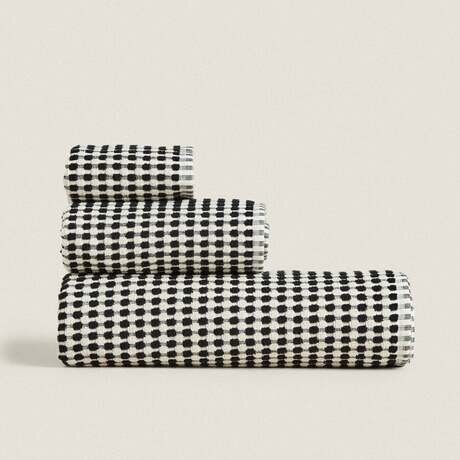 Текстурированное банное полотенце из хлопка с контрастным эффектом вафельной вязки.