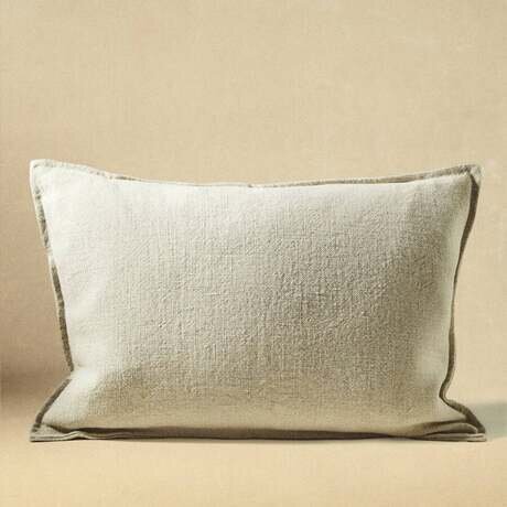 Чехол на подушку из 100% льна с однотонным рисунком и соответствующей строчкой по краям Наполнитель подушки в комплект не входит.
