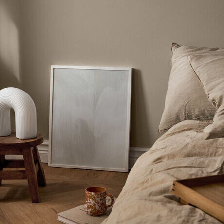 Спокойное сочетание мягких белых и бежевых тонов, создающее структурированное и минималистское впечатление.