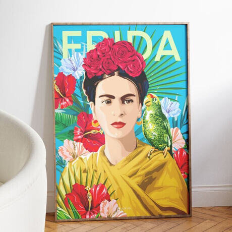 Прославьте цвет, силу и творчество с помощью этого прекрасного постера Фриды Кало. Окруженная тропическими цветами и экзотическими элементами, Фрида изображена со своей фирменной силой и неповторимым стилем. Дань уважения одной из самых знаковых и вдохновляющих фигур в мире искусства. Идеально подходит в качестве украшения вашего дома, офиса или любой комнаты, которая нуждается в художественном и вдохновляющем акценте.