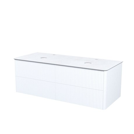 Большая подвесная тумба для ванной комнаты Aiger в классическом белом цвете с выдвижными ящиками и столешницей из керамогранита – красивый лаконичный дизайн вне времени с трендовой вертикальной фрезеровкой.