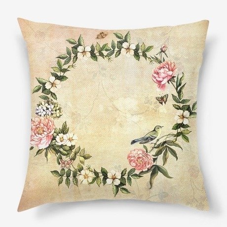 Название: | Подушка "Винтажный венок с пионами и птичкой" |
