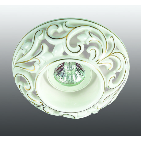 Стиль светильника: классика, Диаметр: 150, Форма светильника: круг, Материал светильника: фарфор, Количество ламп: 1 шт., Тип лампы: галогенная, Мощность: 50 Вт, Патрон: GX5.3, Цвет арматуры: белый с золотом, Вес нетто: 0.42 кг