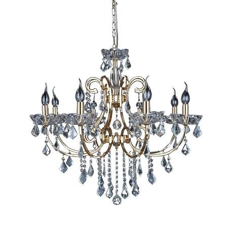 Назначение светильника: для гостиной, Стиль светильника: современный, Материал светильника: металл, стекло, Ширина: 350 мм, Диаметр: 350 мм, Высота: 170 мм, Количество ламп: 8 шт., Тип лампы: накаливания, Мощность: 480 Вт, Патрон: Е14, Цвет арматуры: золото