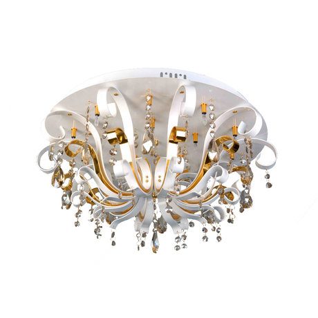 Назначение светильника: для гостиной, Стиль светильника: классика, Тип: потолочная, Материал светильника: металл, хрусталь, Длина: 530 мм, Ширина: 530 мм, Высота: 300 мм, Количество ламп: 15 шт, Тип лампы: галогенные и светодиодные, Мощность: 20 Вт, Патрон: G4, Пульт ДУ: есть, Цвет арматуры: белый с золотом