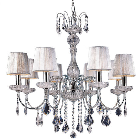 Назначение светильника: для комнаты, Стиль светильника: модерн, Материал светильника: металл, хрусталь, Диаметр: 780 мм, Высота: 820 мм, Количество ламп: 8 шт, Тип лампы: накаливания, Мощность: 40 Вт, Патрон: Е14, Пульт ДУ: нет, Цвет арматуры: хром