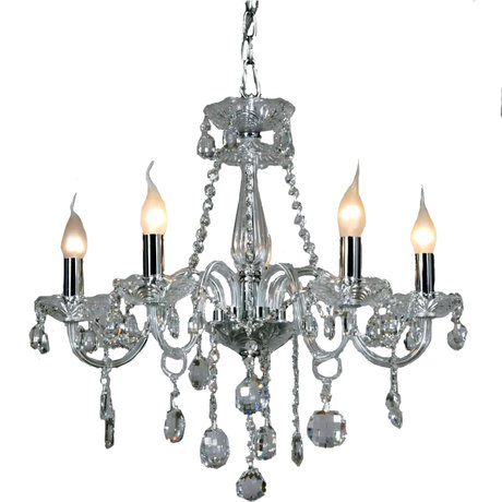 Назначение светильника: для комнаты, Стиль светильника: классика, Материал светильника: металл, хрусталь, Диаметр: 580 мм, Высота: 600 мм, Количество ламп: 5 шт, Тип лампы: накаливания, Мощность: 60 Вт, Патрон: Е14, Пульт ДУ: нет, Цвет арматуры: хром