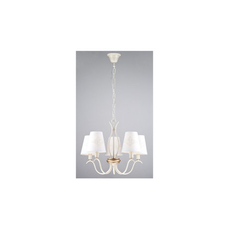 Назначение светильника: для гостиной, Стиль светильника: классика, Тип: подвесная, Материал светильника: металл, ткань, Диаметр: 550 мм, Высота: 420 мм, Количество ламп: 5 шт, Тип лампы: накаливания, Мощность: 40 Вт, Патрон: Е14, Цвет арматуры: кремовое золото