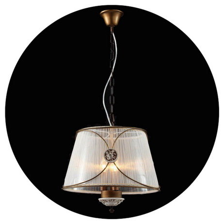 Назначение светильника: для гостиной, Стиль светильника: классика, Тип: подвесная, Материал светильника: металл, ткань, Диаметр: 430 мм, Высота: 360 мм, Количество ламп: 3 шт, Тип лампы: накаливания, Мощность: 40 Вт, Патрон: Е14, Цвет арматуры: бронза