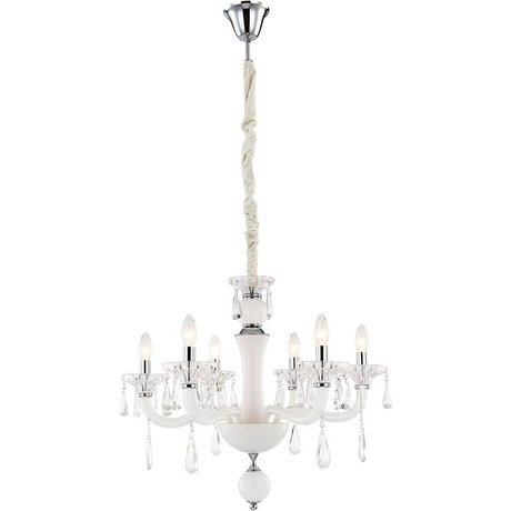 Назначение светильника: для комнаты, Стиль светильника: классика, Тип: подвесная, Материал светильника: металл, стекло, Длина (мм): 1270, Ширина: 650, Высота: 650, Количество ламп: 6, Тип лампы: накаливания, Мощность: 40, Патрон: Е14, Цвет арматуры: серебристый