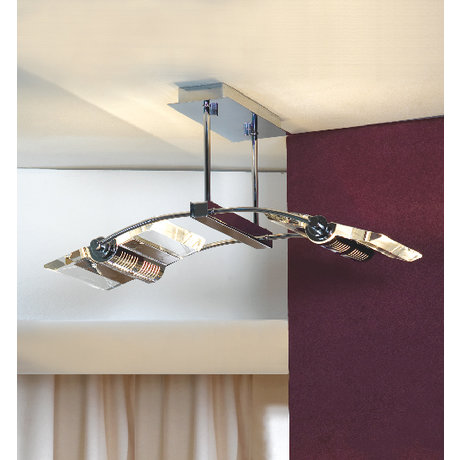 Назначение светильника: для комнаты, Стиль светильника: модерн, Материал светильника: металл, стекло, Длина (мм): 310, Ширина: 680 мм, Количество ламп: 2 шт., Тип лампы: люминесцентная, Мощность: 300 Вт, Патрон: R7s, Цвет арматуры: хром