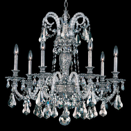 Люстра из коллекции Isabelle с кристаллами Swarovski Elements цвета Silver Shade. Цвет арматуры - античное серебро. Высота светильника регулируется за счет звеньев цепи.