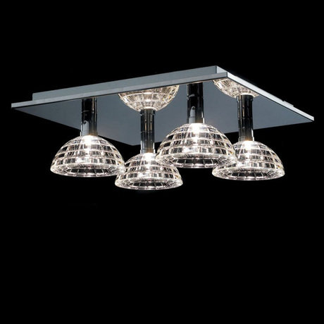 Потолочный светильник на хромированной арматуре. Плафон из прозрачного фактурного стекла.