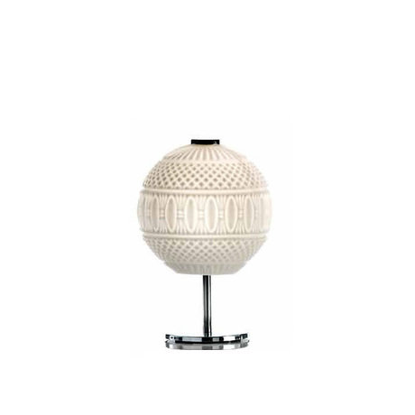 Настольная лампа со стеклянным плафоном белого цвета с орнаметном. Цвет арматуры: никель. Количество лампочек: 1; Мощность: 1 x 60 Вт; Тип лампы: Галогенная, G9