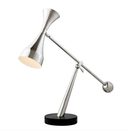Лампа для рабочего стола Cordero выполнена из никелированного металла. База черного цвета выполнена из мрамора.