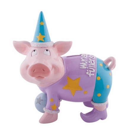 Свинка-копилка с праздничным колпаком на голове. Эта веселая свинка всем видом показывает, к какому дню она предназначена – к дню рождения! Ее можно подарить ребенку или использовать как аксессуар на кухне или гостиной. К примеру, складывать в нее чеки из магазинов для учета финансов.