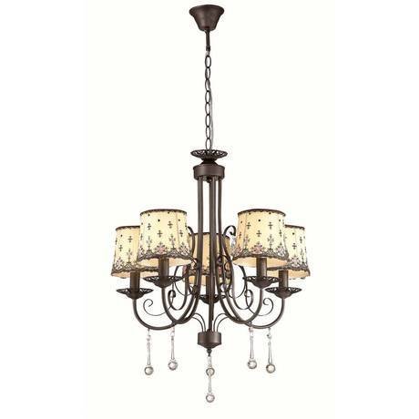 Количество ламп: 5; Мощность лампы, W: 40; Общая мощность, W: 200; Площадь освещения, м2: 11.1; Тип цоколя: E14; Тип лампочки (основной): Накаливания; Напряжение, V: 230; Степень защиты, IP: 20; Виды материалов: Текстильные; Материал арматуры: Металл; Материал плафонов: Ткань; Цвет: Бежевый; Цвет арматуры: Коричневый; Цвет плафонов: Разноцветный; Место установки: На потолок.