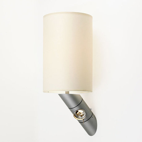 Настенный светильник с плафоном из белого текстиля. Арматура из металла матово-серого цвета. На арматуре регулируемая лампа для чтения. Количество лампочек: 1. Мощность: 1 x 70 Вт. Тип лампы: Галогенная, E27.