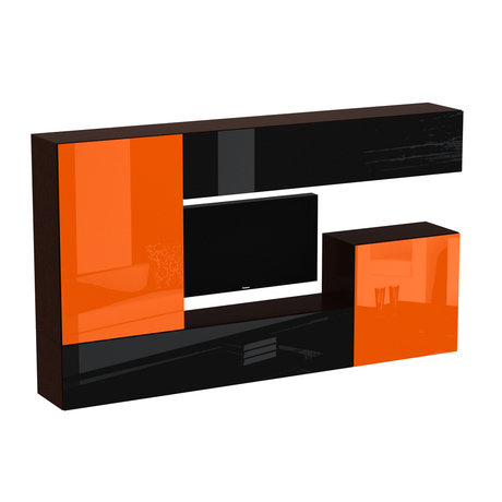 Композиция для гостиной. Все модули коллекции Сubo крепятся к стене. Двери шкафов и выдвижные ящики открываются по принципу «нажал-открыл».