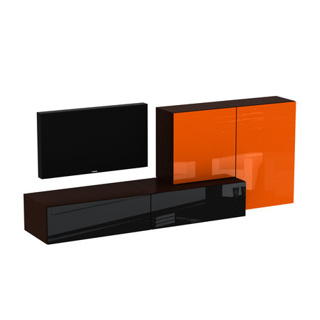 Композиция для гостиной. Все модули коллекции Сubo крепятся к стене. Двери шкафов и выдвижные ящики открываются по принципу «нажал-открыл». Глубина шкафов:372 мм.