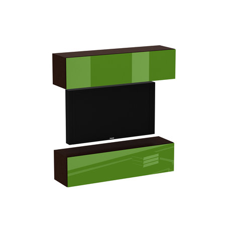 Композиция для гостиной. Все модули коллекции Сubo крепятся к стене. Двери шкафов и выдвижные ящики открываются по принципу «нажал-открыл».