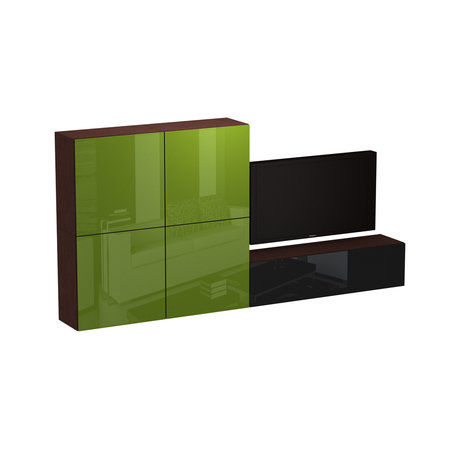 Композиция для гостиной. Все модули коллекции Сubo крепятся к стене. Двери шкафов и выдвижные ящики открываются по принципу «нажал-открыл».