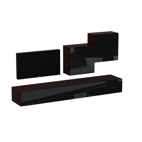 Композиция для гостиной. Все модули коллекции Сubo крепятся к стене. Двери шкафов и выдвижные ящики открываются по принципу «нажал-открыл».