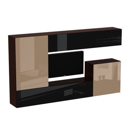 Композиция для гостиной. Все модули коллекции Сubo крепятся к стене. Двери шкафов и выдвижные ящики открываются по принципу «нажал-открыл».