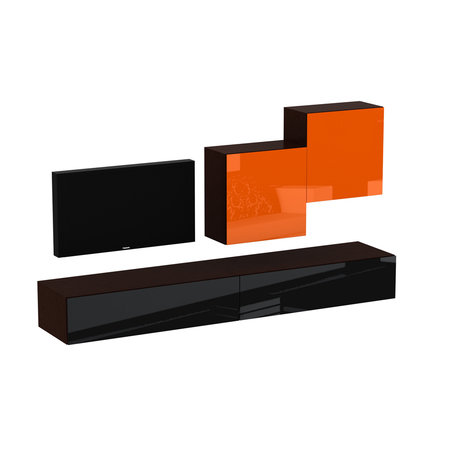Композиция для гостиной. Все модули коллекции Сubo крепятся к стене. Двери шкафов и выдвижные ящики открываются по принципу «нажал-открыл».