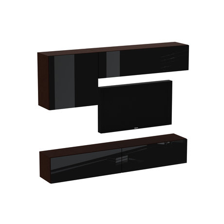 Композиция для гостиной. Все модули коллекции Сubo крепятся к стене. Двери шкафов и выдвижные ящики открываются по принципу «нажал-открыл».